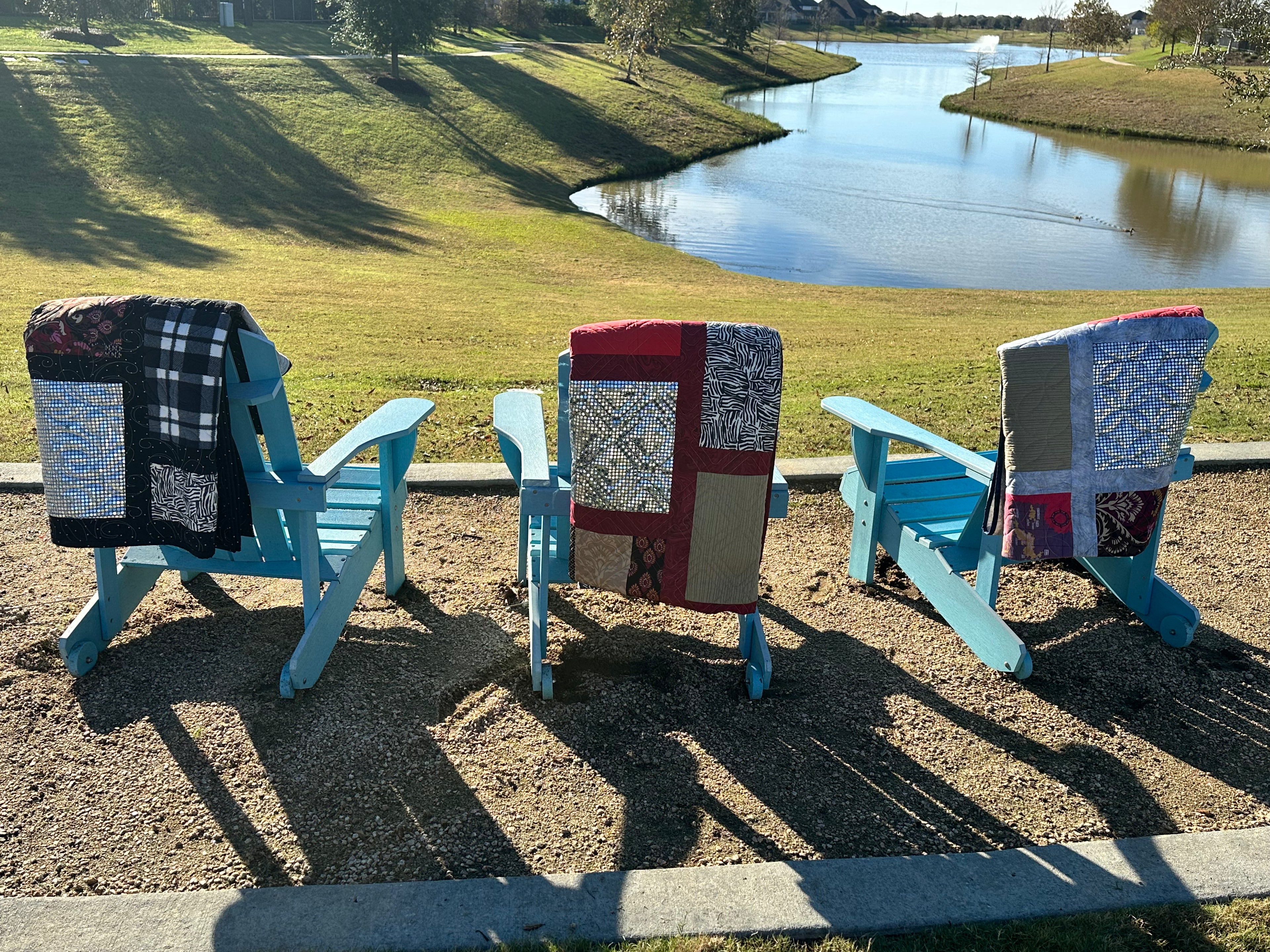 Memory Quilt made for 3 siblings who recently lost their Mom. Same clothing, different structures, connecting them from coast to coast with hugs from Mom for each of them.