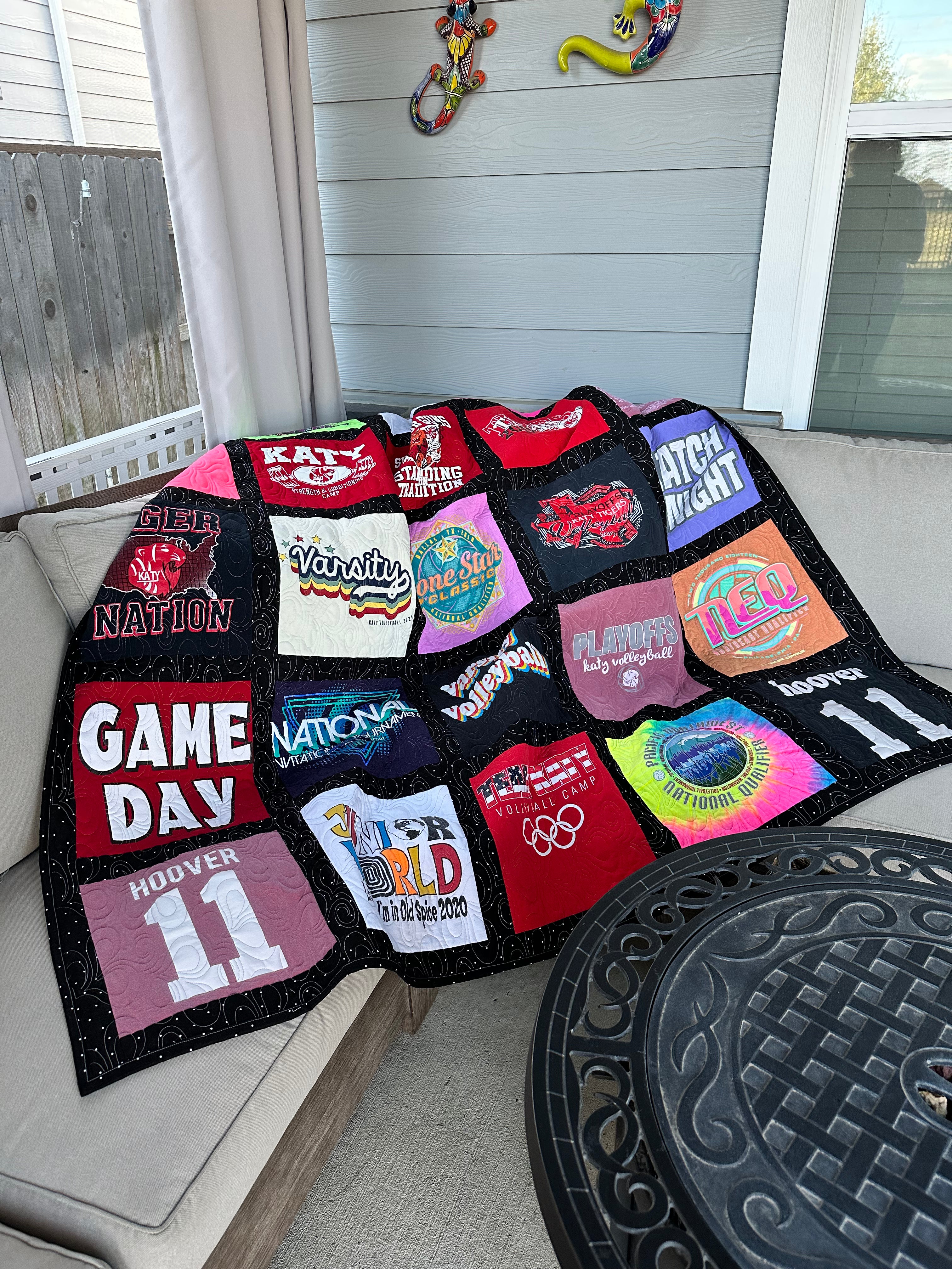TShirt Quilt made with High School Volleyball Shirts to have a lasting memory keepsake.